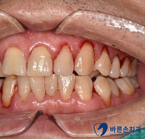 그러나 치주병이 발생한 잇몸은 빨갛게 발적이 되어있고 치은부종과 출혈이 함께 나타나게 됩니다.