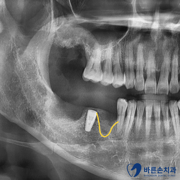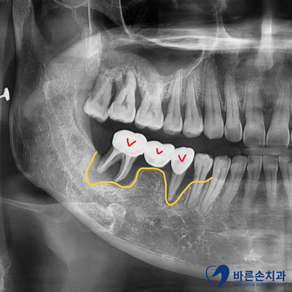 위 사진의 노란 선이 현재 치조골의 높이입니다.