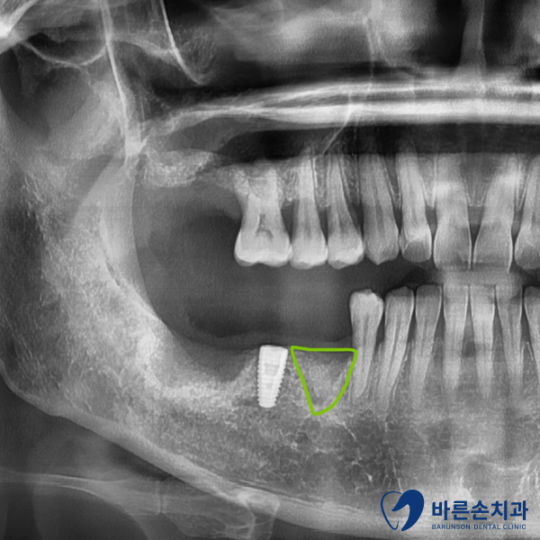 가운데 뼈가 있는 부분은 바로 임플란트를 식립했고