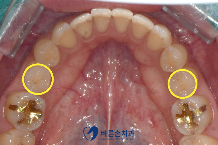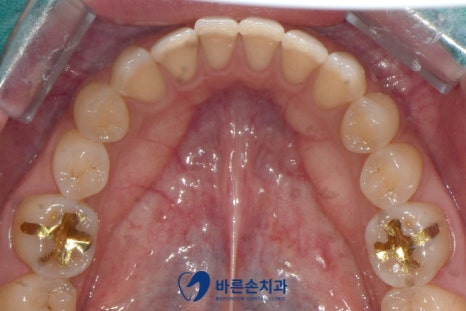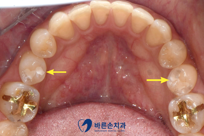 안녕하세요. 의정부 <바른손치과>입니다. 오늘은 충치치료 중 GI (Glass Ionomer)라는 재료를 사용한 케이스를 보여드릴거에요! 충치가 생겼을 때 작고 얕은 충치가 생긴 경우 레진 , GI 라는 두가지 재료로 때우는 치료를 진행합니다. 레진은 단단하고 치아색이라 심미적이지만 비보험 재료이기에 상대적으로 비쌉니다. GI 는 레진보다 덜 단단하고 흰색을 띄어 티가나지만 건강보험 재료이기에 상대적으료 저렴하죠. 물성이나 심미성은 레진이 좀 더 우수 하지만, 큰 충치가 아니고, 보이지 않는 곳이라면 GI 치료도 괜찮은 방법이 될 수 있어요^^ 그럼 간단한 증례 사진을 보여드릴게요!! 사진에 보이시는 것처럼 양쪽 작은 어금니에 까만 충치가 생겨있습니다. 깊지 않기 떄문에 GI 로 치료 하기로 합니다 충치를 제거하고 GI로 채워넣어 재료가 굳을 때까지 7분~10분정도 기다립니다. 그 후 부드럽게 다듬고 교합 확인을 하게되면 이렇게 치료가 끝나게 됩니다! 치아색보다 환한 색이지만 씹는면이라 잘 보이지도 않고 저렴하게 충치치료 하셨기에 만족하셨어요^^ 비교 사진 보여드릴게요! 충치를 말끔히 제거하고 치료했습니다! 이상 오늘은 간단한 GI 충치치료에 대해 설명드렸어요^^ 작게 보이는 충치라도 미리 치료하지 않으면 어느순간 치아에 통증이 생기게 되고 치료비는 더 많이 나올 수가 있습니다..ㅜ 그렇기에 항상 정기검진이 꼭 중요하구요! 치료는 미룰 수록 좋지 않다는 점..^^ 그럼 오늘은 여기까지 하고 마치겠습니다 ㅎ 감사합니다~ 카테고리: 충치치료