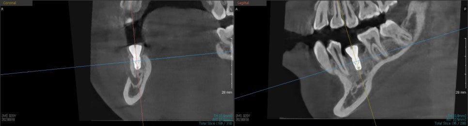 임플란트를 심을 위치를 확인하고 신경까지의 거리를 보기 위해
