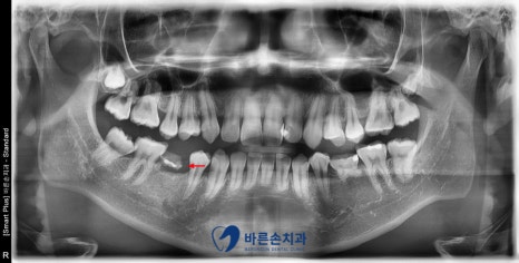 정확히 보기 위해 파노라마 엑스레이 사진을 찍었는데요.