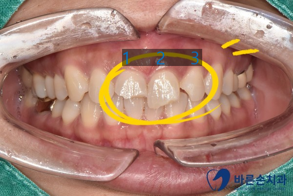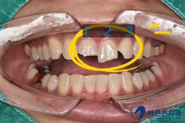 앞니 3개가 부러지셔서 내원하여 주셨습니다.