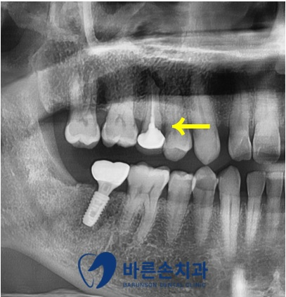 확인해 보니 이미 기존에 <신경치료와 포스트 크라운> 치료를 진행했던 치아라는 것을 알 수 있었습니다