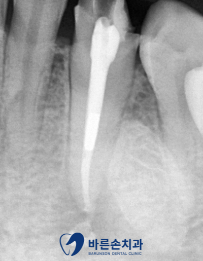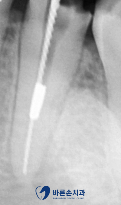 안녕하세요. 의정부 <바른손 치과>입니다. 오늘은 재신경치료에 대해서 설명드리겠습니다! 신경치료 한 치아에 염증이 발생됐다며 오신 환자분입니다. 파노라마 사진 상에 화살표 부분 보시면! 치아 뿌리 끝에 둥글게 까만색 원이 보이시나요?? 이미 신경 치료가 된 치아인데 염증이 생겼습니다… 통증도 있다고 하셨어요.. 자세히 보니 끝까지 신경치료가 완벽히 된게 아니였습니다. 그렇기 때문에 다시 한번 치아를 살려보자! 해서 재 신경치료를 진행했습니다. 먼저 치아 안에 충전되어있던 재료를 다 제거하고 다시 깨끗한 상태로 만듭니다. 염증도 엄청 많으셨고 발치 가능성도 있다고 설명드렸습니다. 신경관 안에 흰색 금속 무언가가 보였는데요. 제거는 되지 않았지만, 막힌 신경관을 확보하여 기구가 신경관 끝까지 들어가기 때문에 신경치료에는 문제가 되지 않았습니다! 수차례 소독과 배농 후 통증이 사라지셔서 신경관을 GP 콘 이라는 재료로 뿌리끝까지 채웠습니다. 남아있는 치아 머리 부분이 얼마 없기에 기둥(포스트)이 필요하셨고 레진으로 치아 벽도 만들었습니다. 크라운 제작을 위해 본을 뜨고 임시치아도 만들어드린 후 보철물이 제작될 때까지 일주일 정도 시간이 필요했어요. 이렇게 크라운도 씌우고 재신경치료를 마무리했습니다!! 앞으로 아무 통증 없이 잘 쓰셨으면 좋겠네요^^ 신경치료 후 염증이 생긴다고 해서 다 발치로 이어지지는 않습니다. 3D CT 촬영을 통해, 진단 후 재신경치료로 다시 살리는 경우가 많거든요!! 특히 오늘 알아본 케이스와 같이, 앞니의 경우에는 간단히 끝나는 경우도 많습니다!^^ 이렇게 재신경치료에 대해 보셨는데요! 다른 게시글에도 재신경치료의 내용이 있으니 참고해주세요~ 감사합니다^^ #의정부바른손치과 #신곡동바른손치과 #의정부치과추천 #의정부신경치료 #의정부보철치료 #의정부크라운 #의정부인레이 #의정부충치치료 #의정부치아교정 #의정부치아미백 #의정부원데이미백 #의정부임플란트 #의정부턱관절 #신곡동임플란트 #금오동임플란트 #민락동임플란트 #포천임플란트 #노원임플란트 #의정부스케일링 #의정부안아픈치과 #의정부야간치과 #의정부야간진료 |