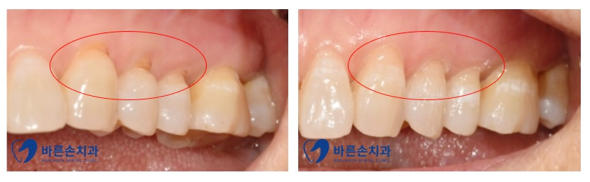 치아색상과 차이가 있어 심미적으로 좋지 않습니다