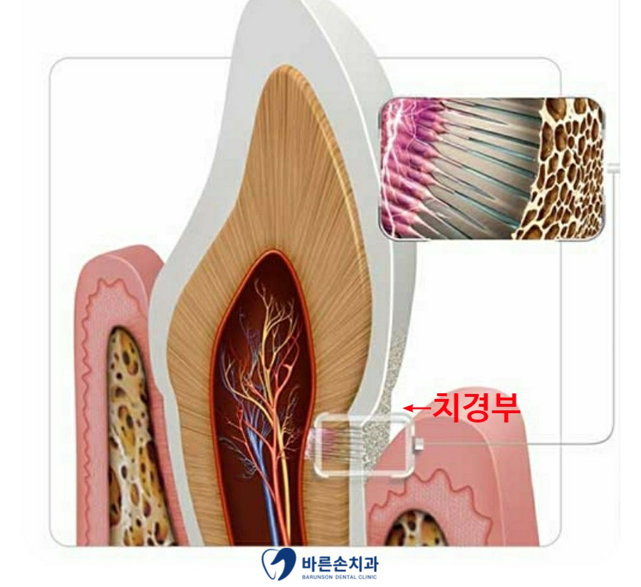 치아의 머리 부분과 뿌리 부분의 경계 부위를 “치경부”라고 하며
