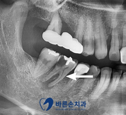 신경관 염증으로 치아 뿌리 주변 치조골까지 손상이 되어