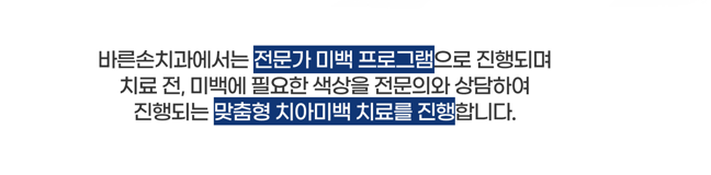 저희 치과에서는 환자분들께서 대부분 선호하시는 <전문가미백>을 주체로 진행하고 있습니다