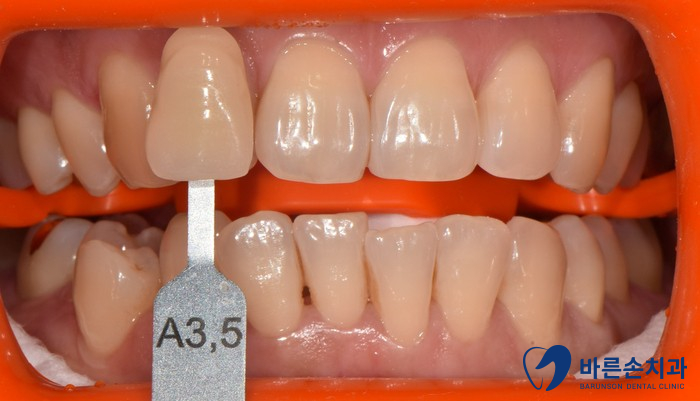 색상 가이드를 이용하여 기존 치아 색을 확인해 봅니다.