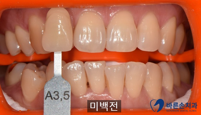 먼저 치아 미백을 진행하기 전 치아 색상을 기록하기 위해