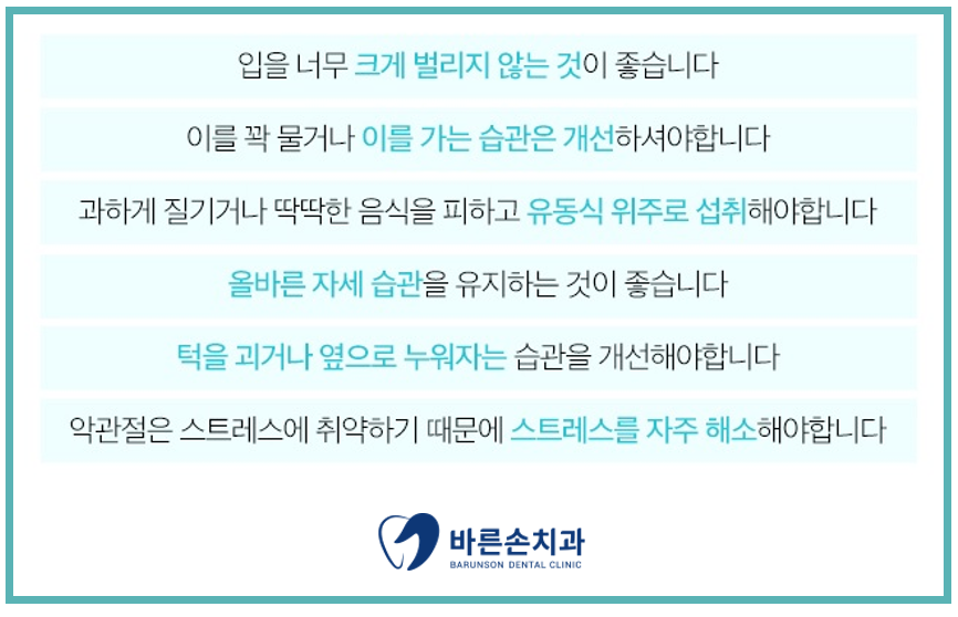 턱관절 장애는 치료와 함께 일상 생활습관 개선이 중요하기 때문에 잘 참고해주세요^^